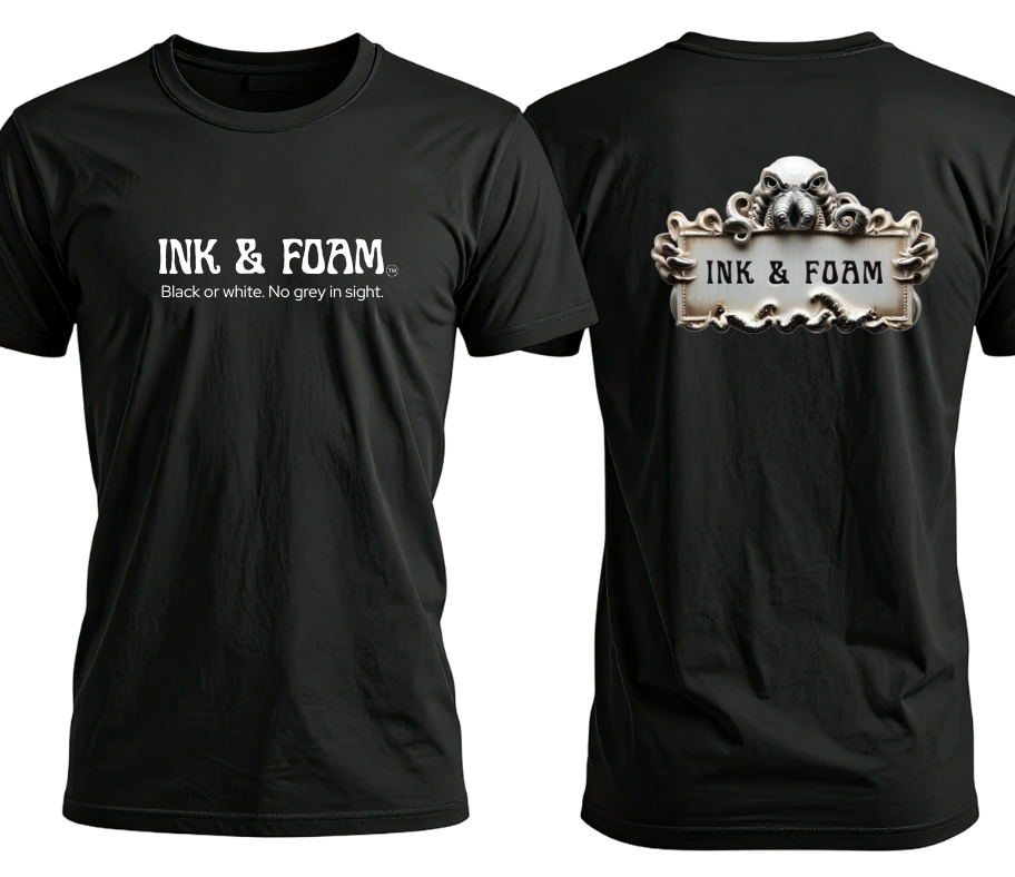 Ink & Foam was born from the meeting of two forces: the adaptability of the octopus and the flow of the surfer. Both move with instinct, balance, and purpose — navigating ever-changing tides with simplicity and strength. Our logo represents all this and more - simply placed. We think its iconic!
